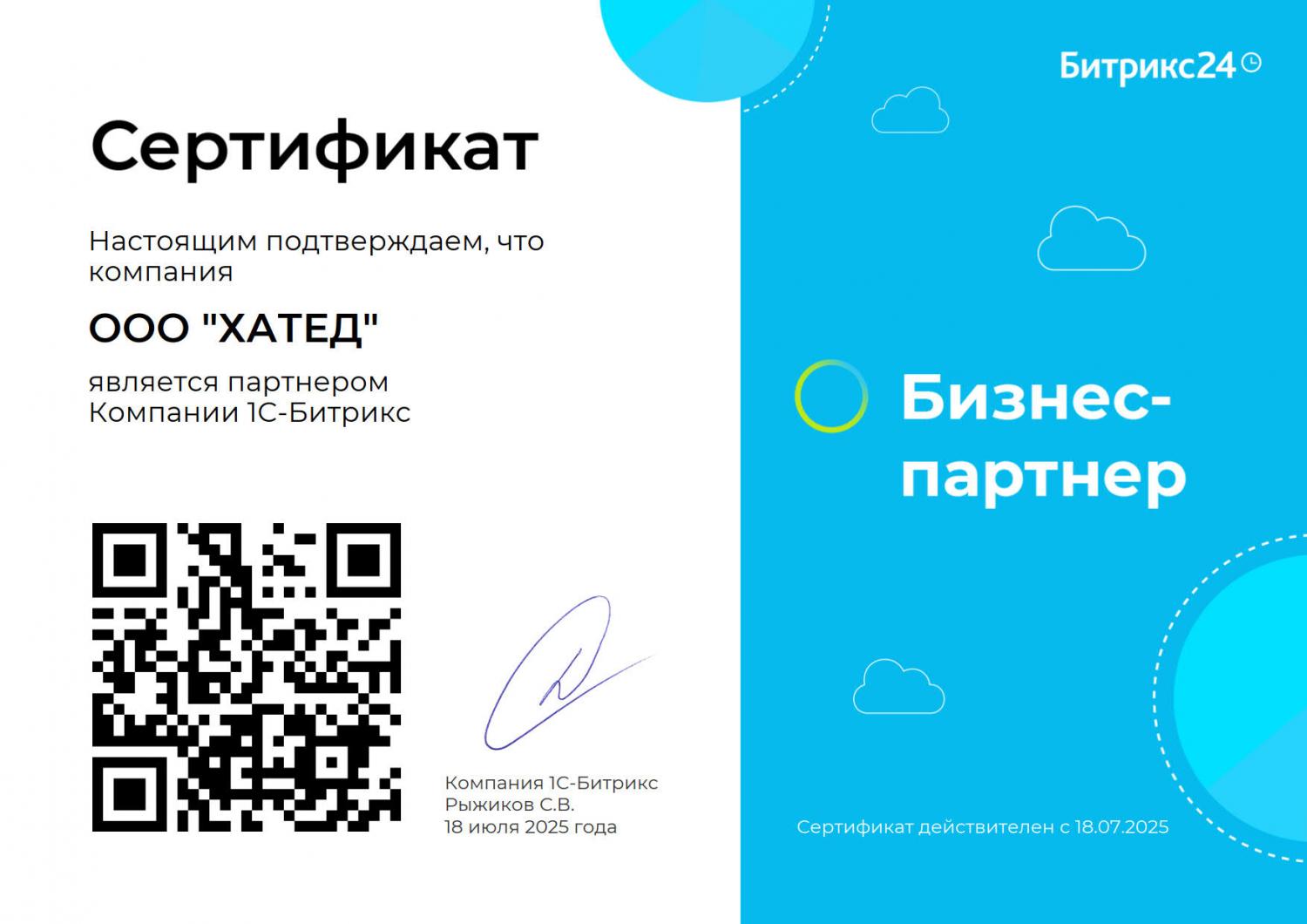 «Бизнес-партнёр „1С-Битрикс24“» — статус компании, который даёт право заниматься направлениями «1С-Битрикс: Управление сайтом» и «Битрикс24».